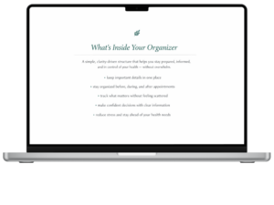 - Complete Health Organizer Bundle – Includes a 1:1 session. After purchase, you’ll schedule your appointment using the link on the confirmation page.